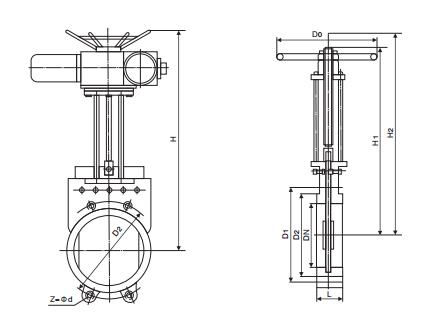 PZ573X伞齿轮浆液阀主要外形及连接尺寸