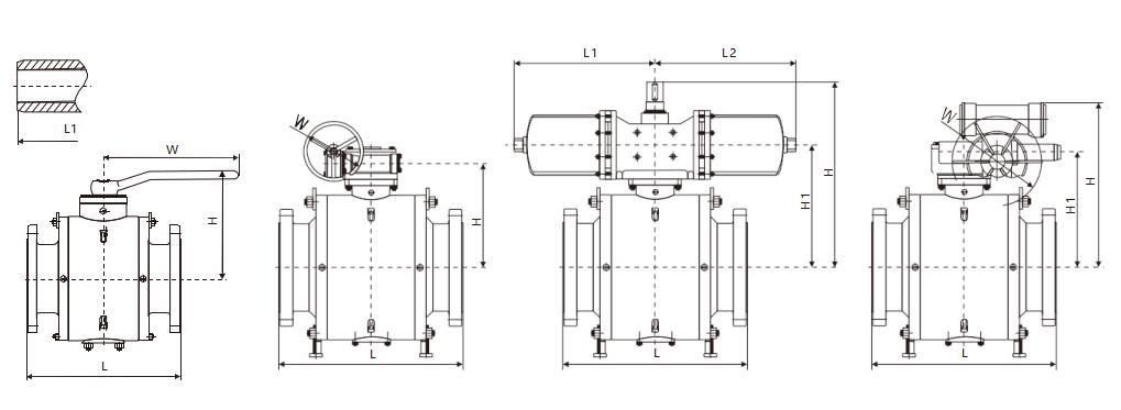 四、Q341F/H/W/Y美标固定式球阀主要外形尺寸