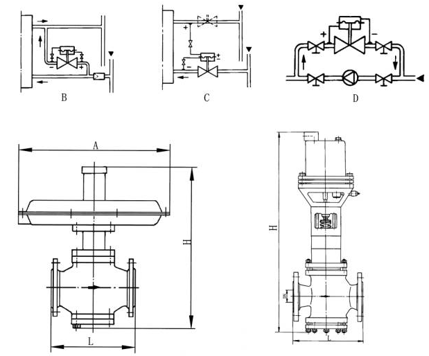 4、阀体为四通形式,因而K、B型可通用一种阀体。