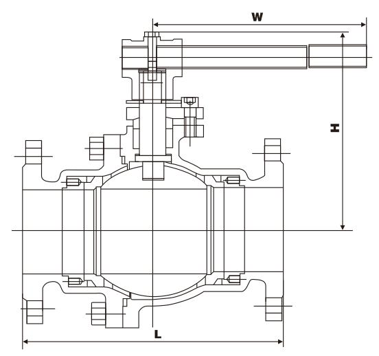Q347F不锈钢蜗轮固定球阀规格主要尺寸: