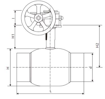 Q367F固定蜗轮式焊接球阀产品尺寸: PN16/PN20/CLASS150